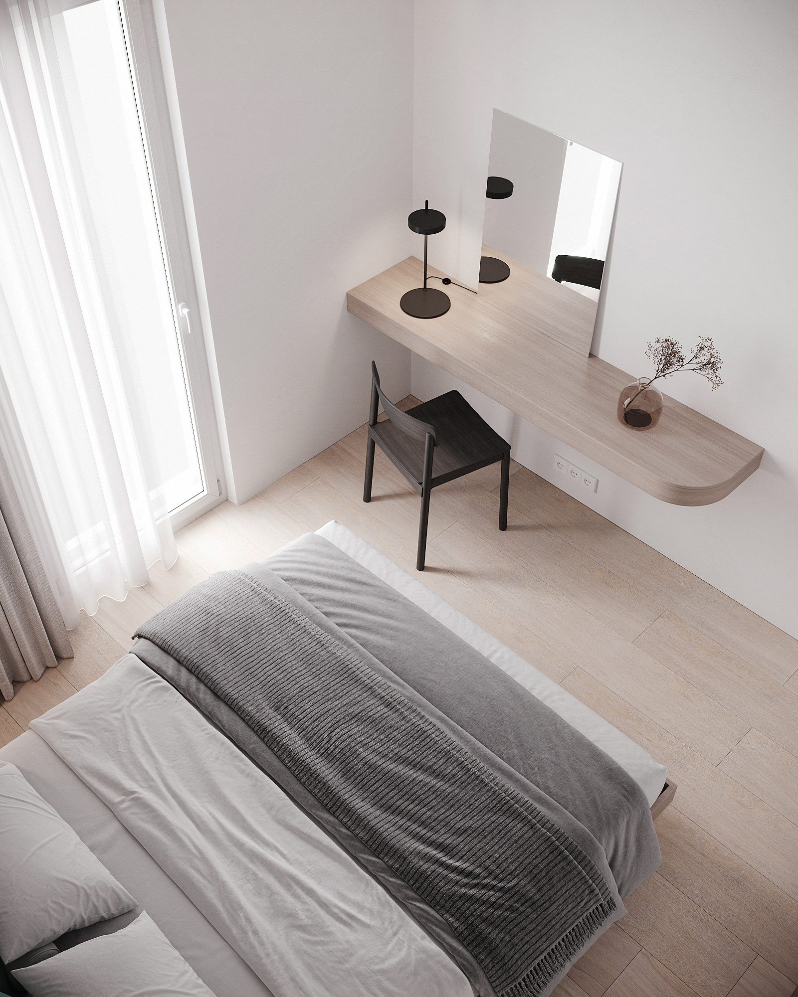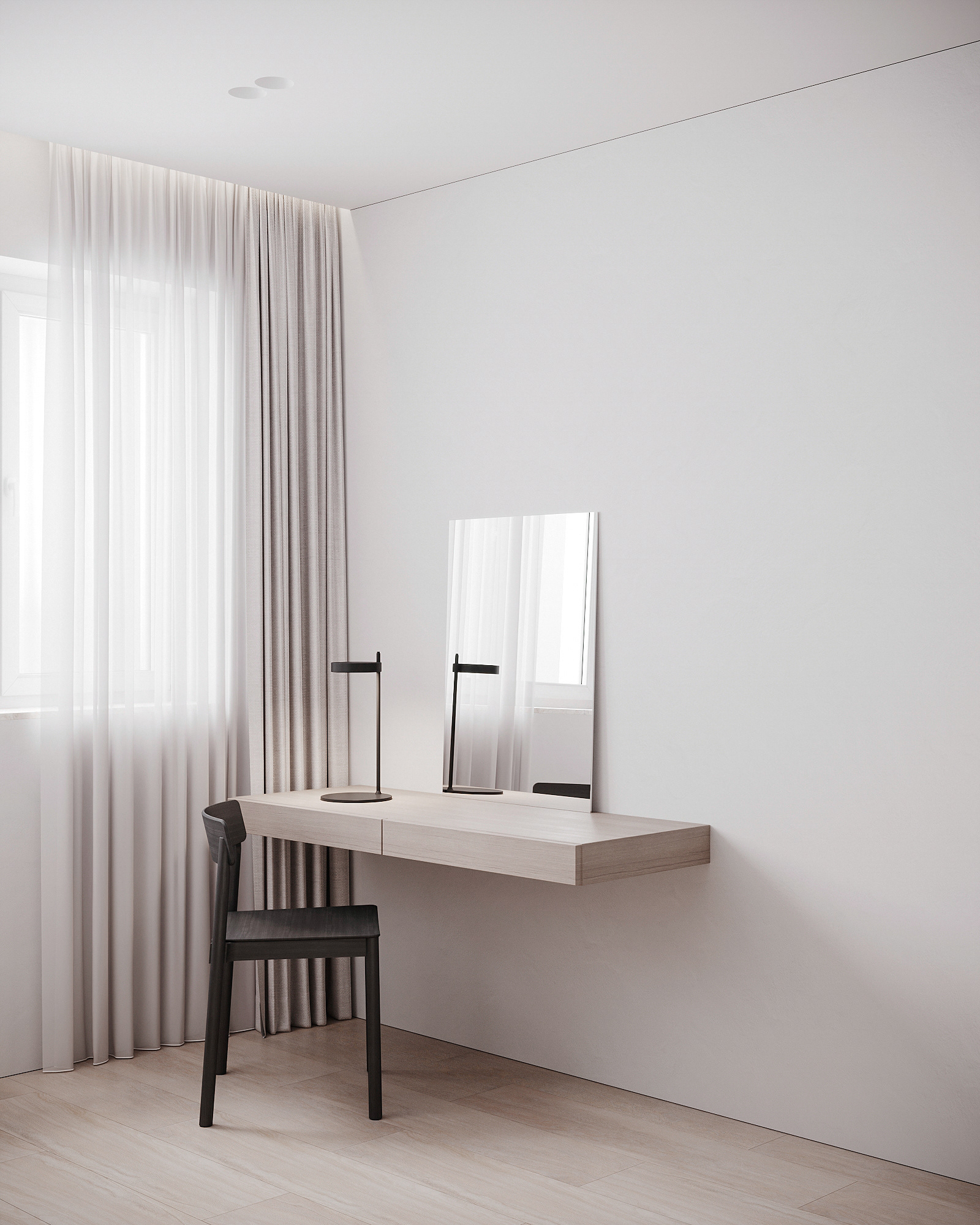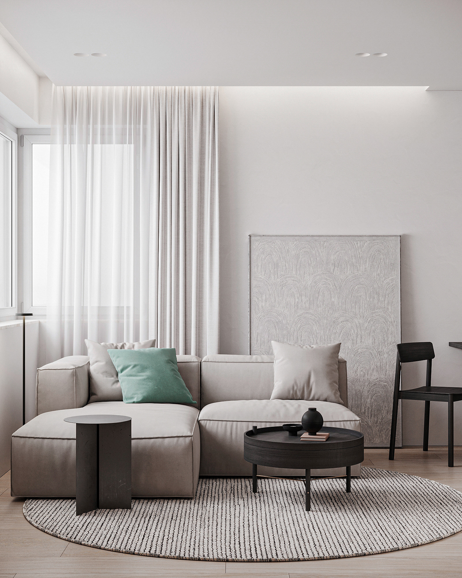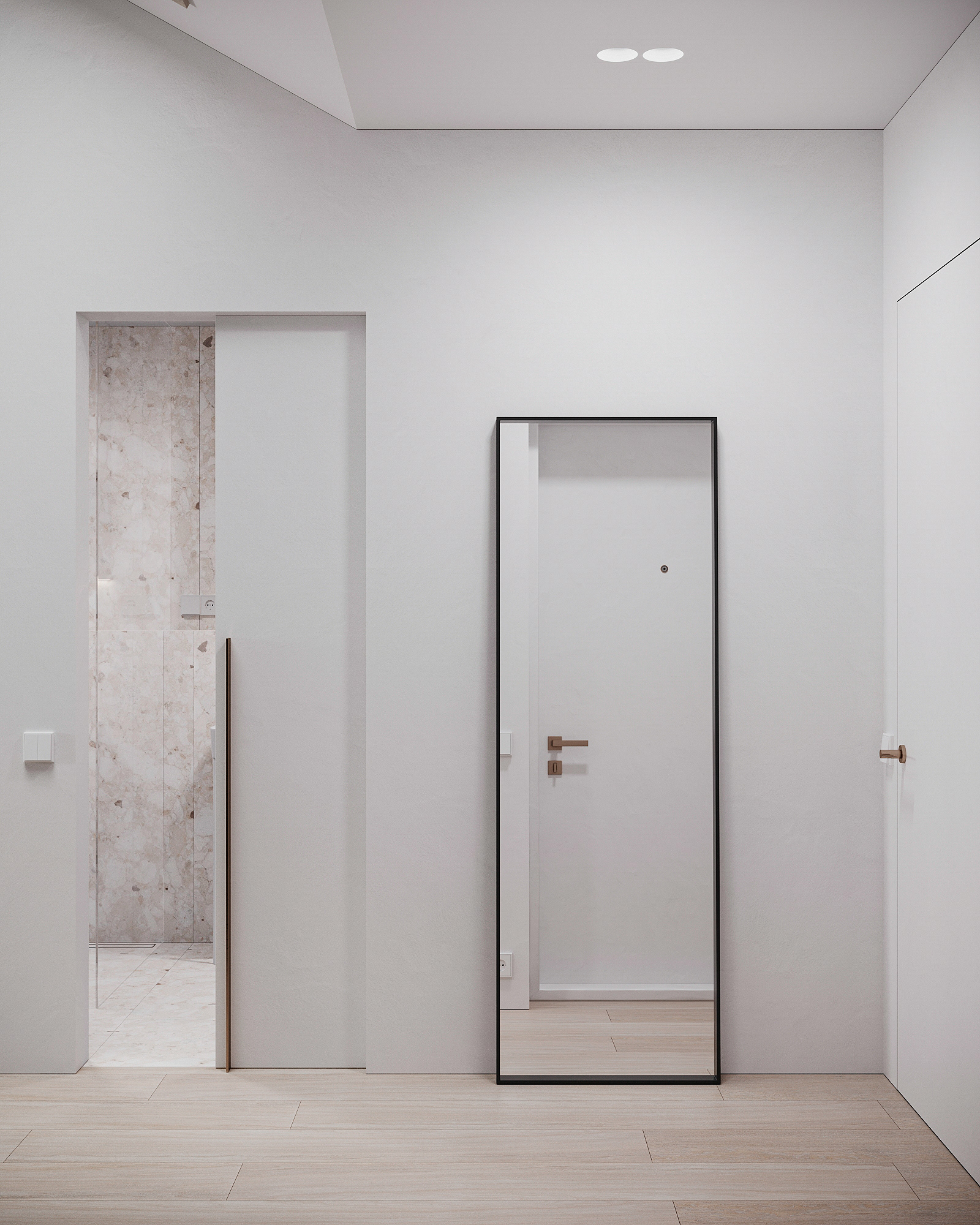 Návrh interiérů třech developerských podkrovních bytů s různými dispozicemi, ve stejném designu.