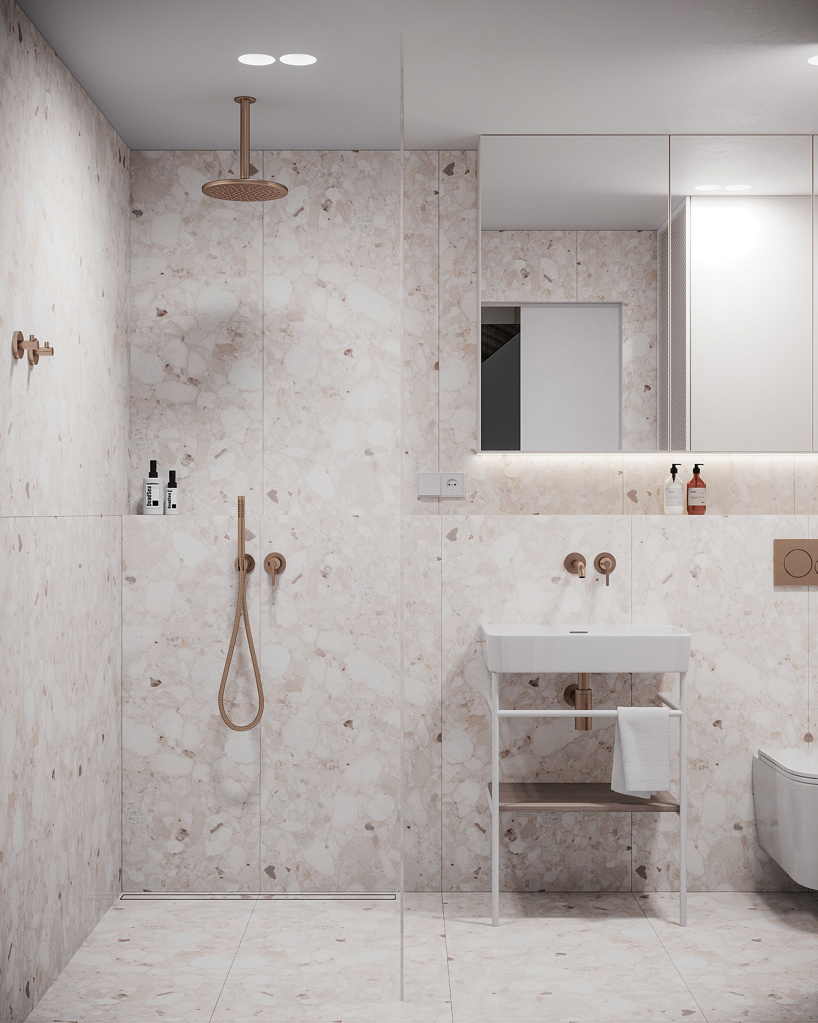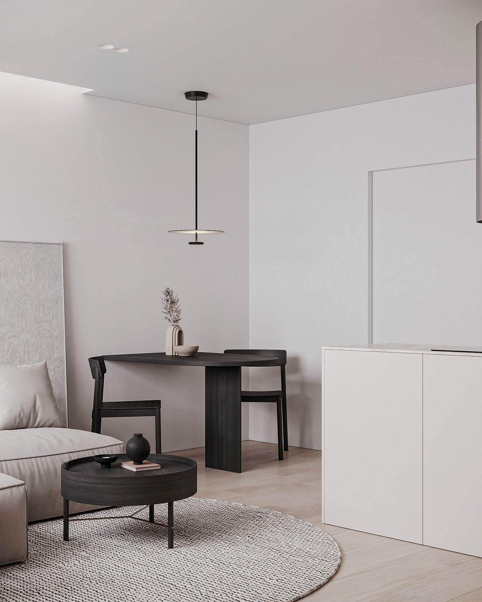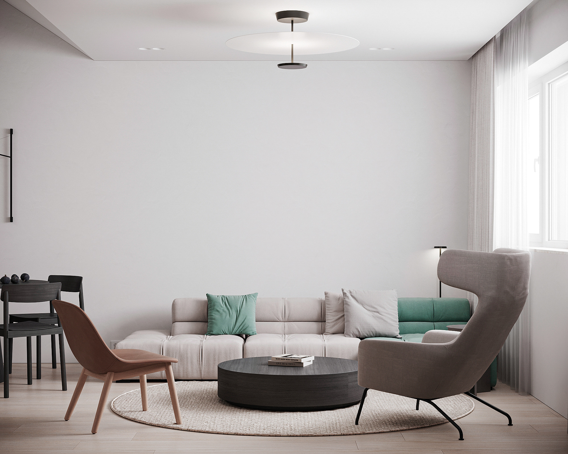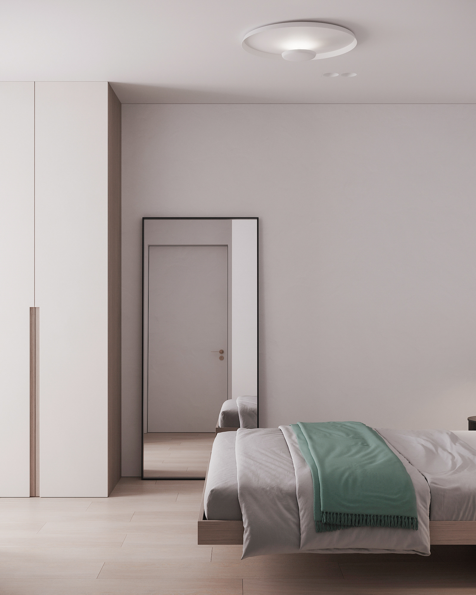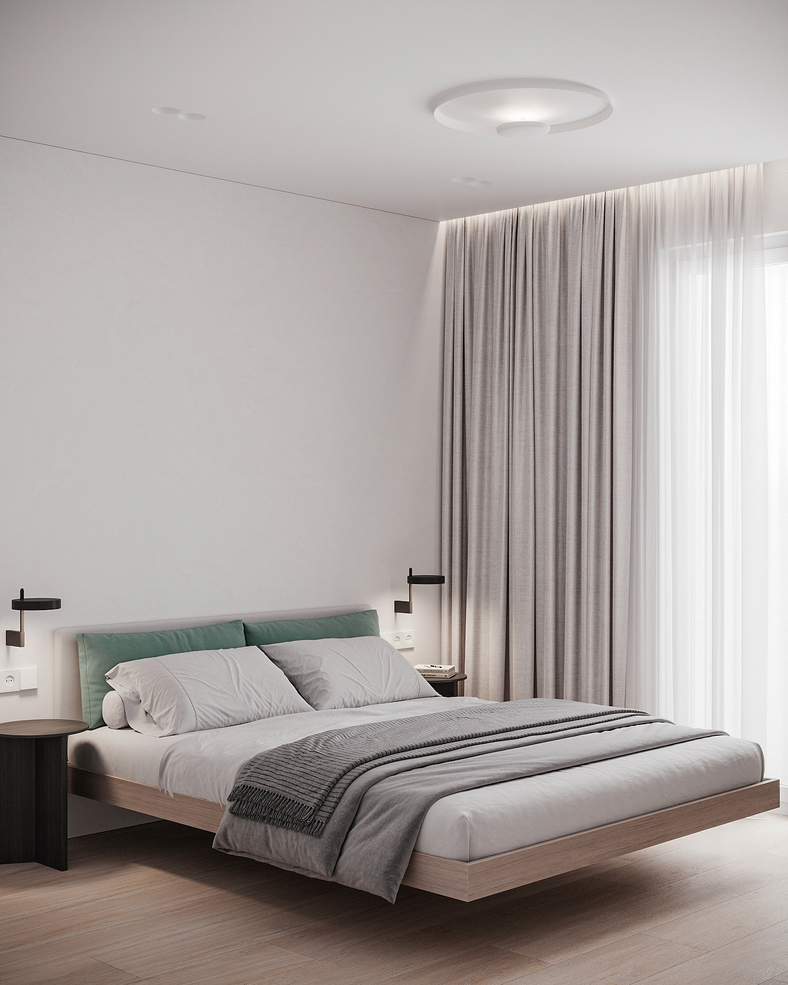 Návrh interiérů třech developerských podkrovních bytů s různými dispozicemi, ve stejném designu.